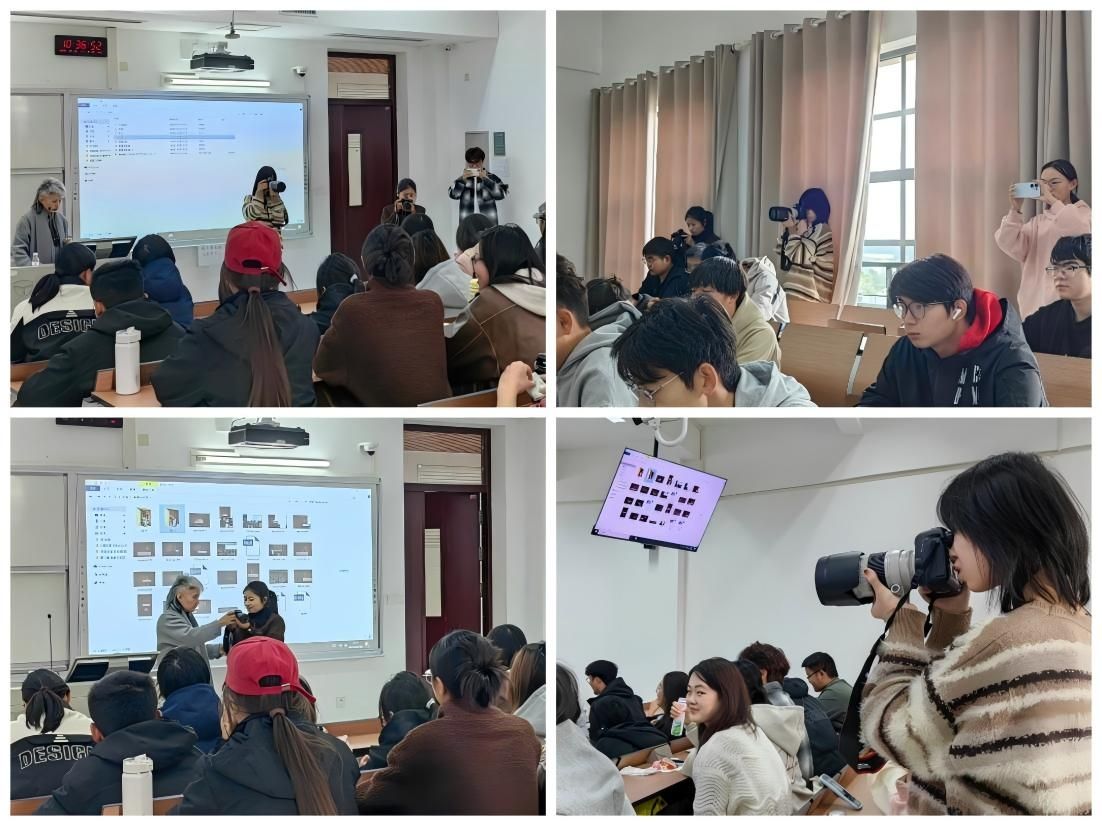 整个培训过程中,同学们始终保持高度热情,积极参与和交流。互动环节,孙老师邀请4名学生分别通过专业相机和手机就地取材、拍摄现场照片,帮助同学们分析拍摄中的典型错误,提出相应的改进方法。同学们表示通过摄影培训极大地提升了自己的摄影技能和审美素养,也缓解了近期的学业压力,今后要将所学技能运用到学习和生活中。